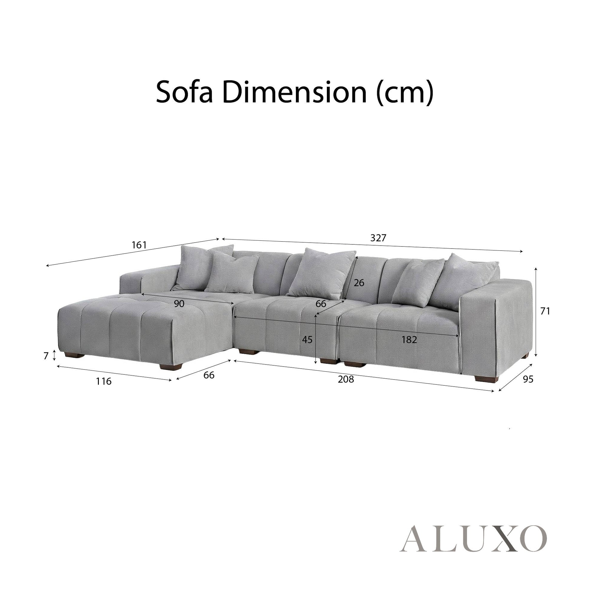 • Seat Area: 182 + 116cm (L) x 66 + 132cm (D)