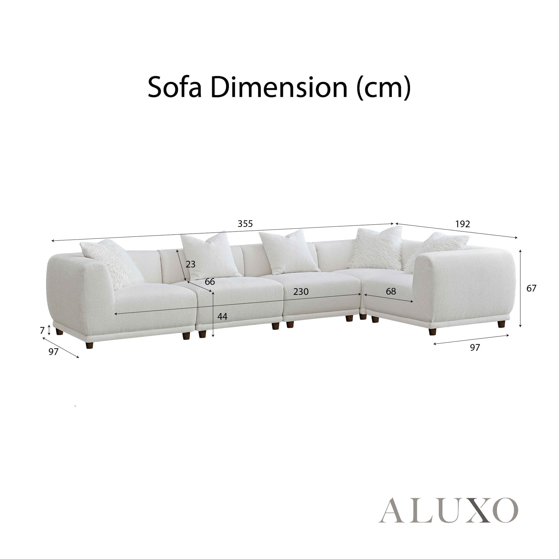 • Overall (3-1-1 layout): 355cm (L) x 192cm (D) x 67cm (H)