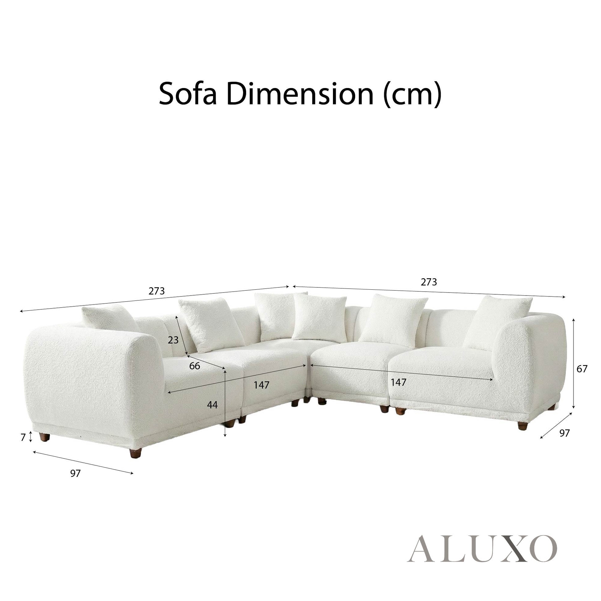 The ALUXO® Lottie Modular Corner Sofa Set with Footstool is a masterclass in flexibility, comfort, and modern style. Upholstered in premium, soft-textured polar bouclé fabric, this complete set provides a unified, sculptural aesthetic that elevates any contemporary living space. Aluxo-Track Aluxo-TrackCopy