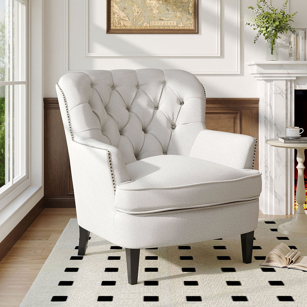 Whether you are a fan of traditional aesthetics or contemporary style, Classic Linen Armchair is sure to be a standout piece in your interior decor. Featuring a linen button back and rivet edge trim, this armchair not only adds a touch of traditional charm but also provides excellent lumbar support. The generously padded seat and backrest ensure optimal comfort. Crafted from premium linen fabric, it offers a soft and comfortable seating experience.