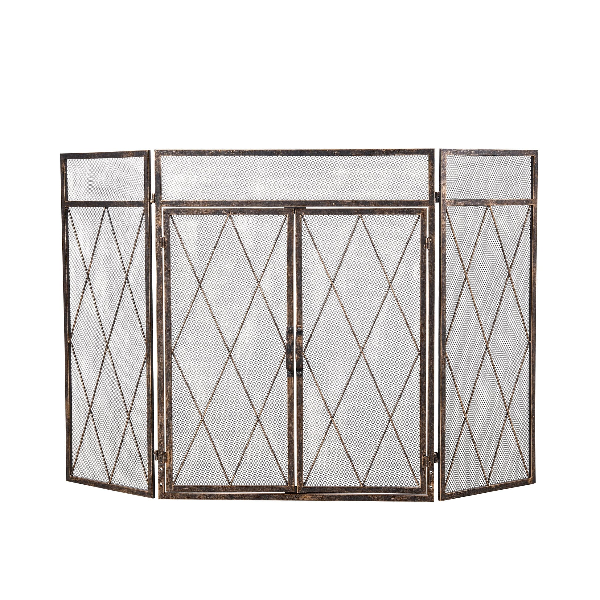 Elevate your fireplace area with the Triple-Fold Fireplace Screen featuring a stunning antique copper powder-coated finish. Measuring 127x13x81cm, this screen is crafted from durable iron and designed with a flexible three-fold structure, offering easy adjustment to fit a variety of fireplace widths. The antique copper powder-coating not only enhances its timeless elegance but also ensures protection against rust and wear. Perfect for adding charm and safety to your fireplace, this screen effectively contains sparks and embers while complementing any traditional or modern decor.